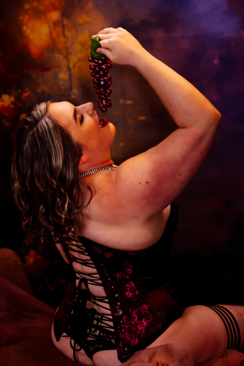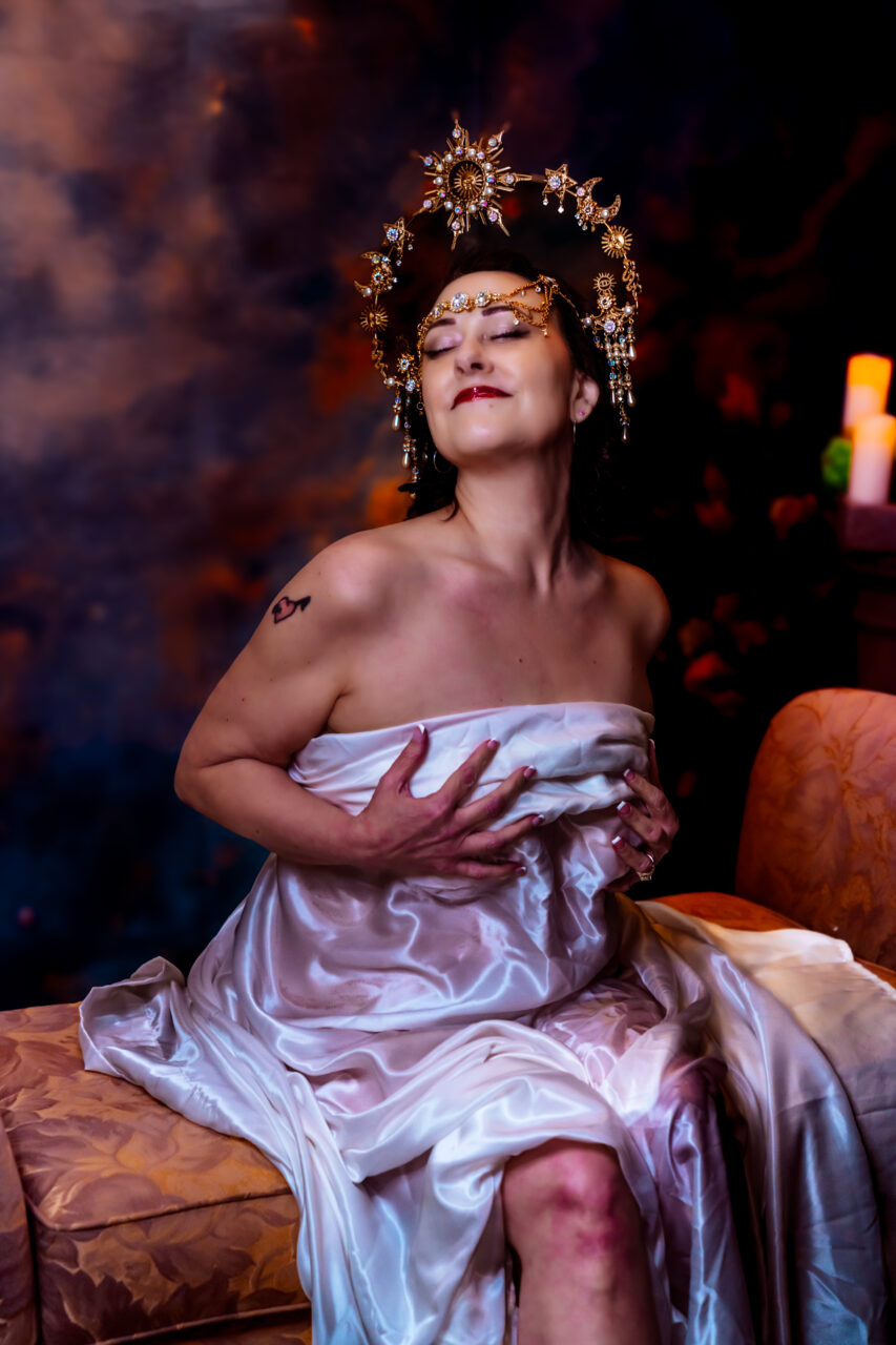 Available only through the end of June, imagine yourself draped in a glorious satin gown, a favorite lingerie set, our beautiful, soft wings – or, even nothing at all as you’re transported to a world befitting the Goddess we all know you are!