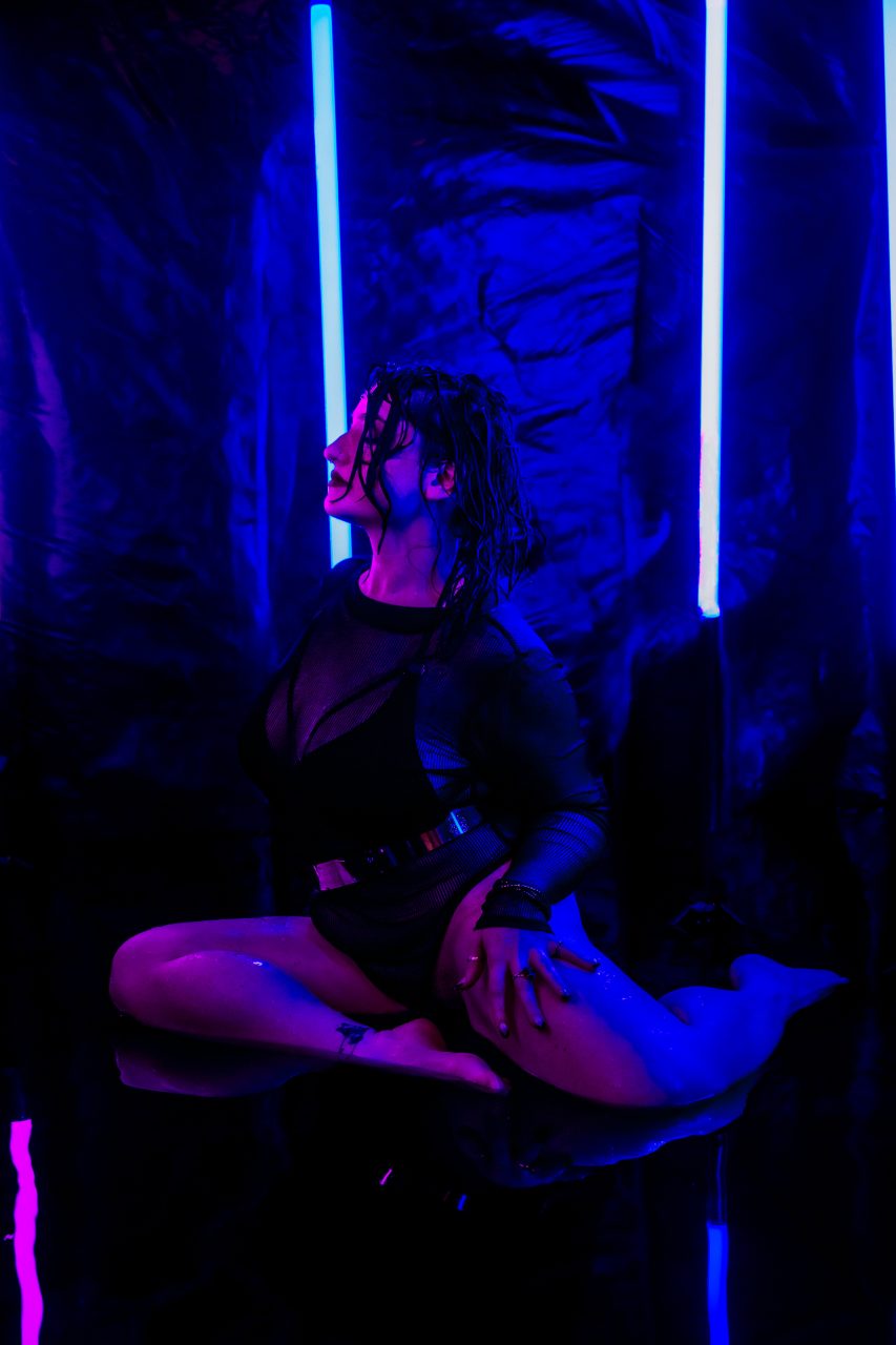 We might be biased, but the lighting in this room? Stupid beautiful. Our setup is designed so the light doesn’t simply hit you—it wraps around you, glides along your curves, dances in the droplets, and turns every shift of your shoulders into visual poetry.
